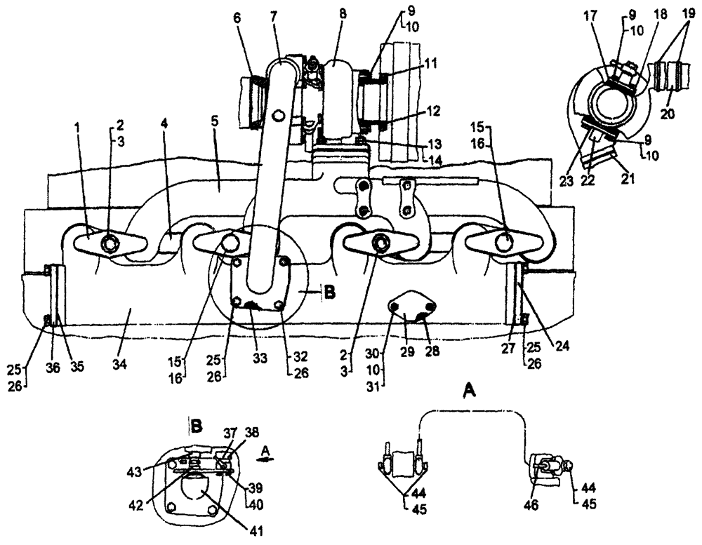 Установка коллекторов для дизеля с турбокомпрессором К27