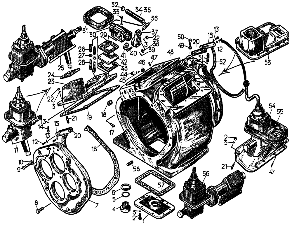 Корпус коробки передач с крышками и механизмами переключения