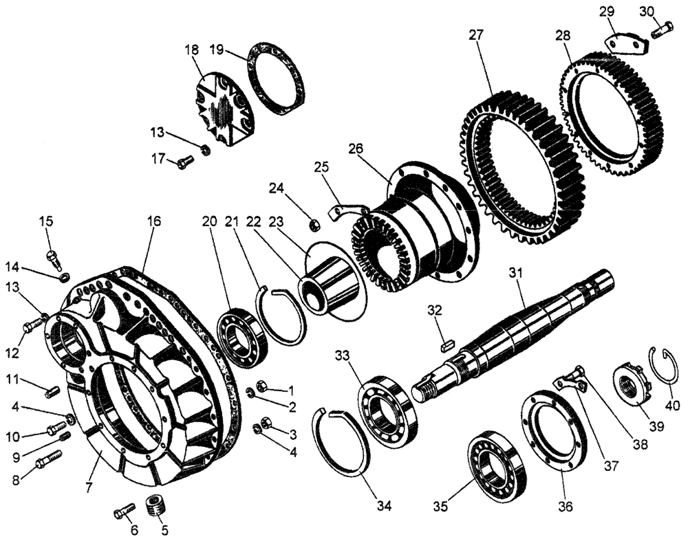 Кожух, полуось, подшипники, ступица, шестерни