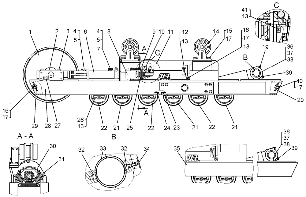 1 Для пятикатковой тележки с усиленной рамой под установку бульдозерного оборудования.