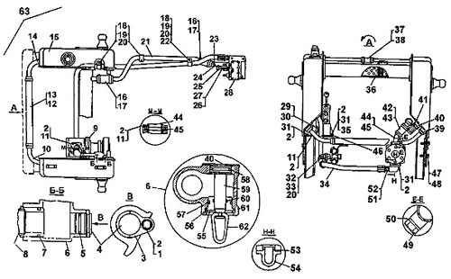 Установка гидравлической системы подетально