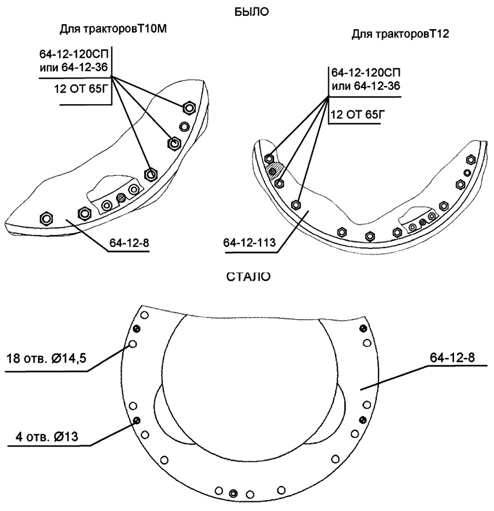 Для тракторов Т10М.0100, Т10МБ.0120, Т10М.6000, Т10М2Б.6020, Т11, Т12, Т14 введены 100% отверстия в рамах тележек для установки защиты ходовой.