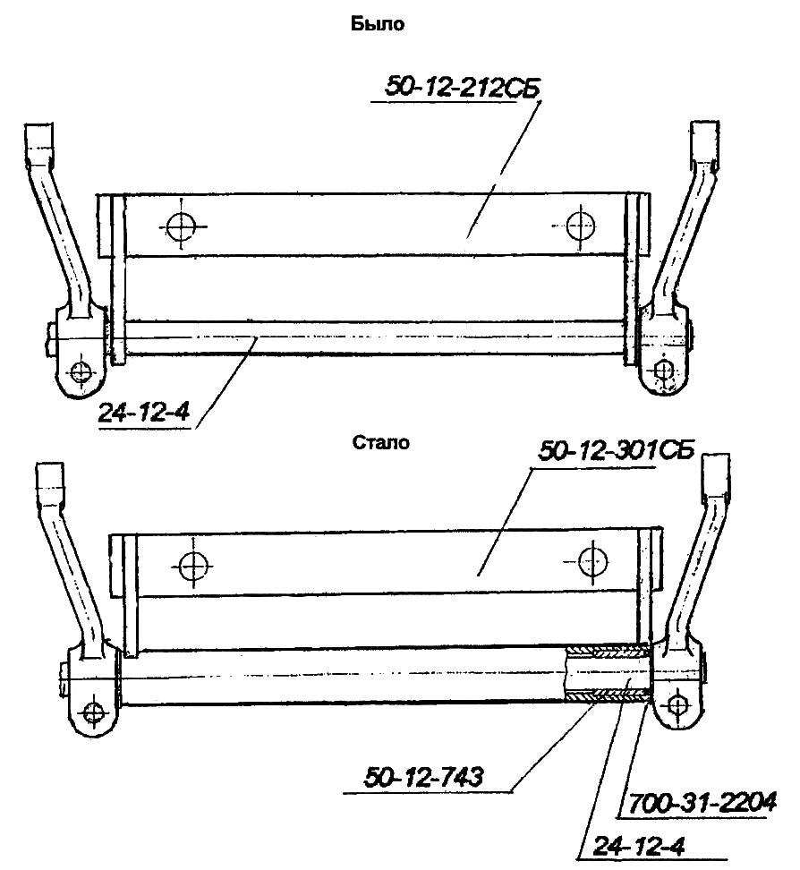 С целью снижения затрат и устранения литья разработано жесткое прицепное устройство сварной конструкции (64-51-218СП/СБ) взамен литой (50-51-118СП/СБ).
