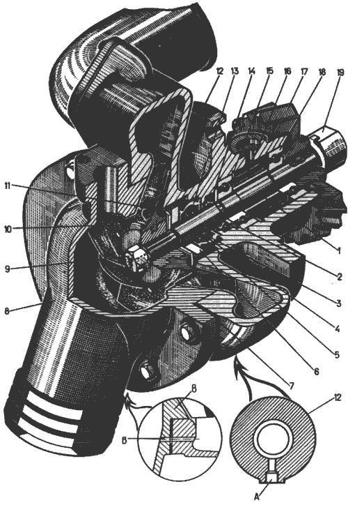 • снять раструб 8 (см. рис. 18) насоса и прочистить дренажное отверстие В в корпусе и раструбе;