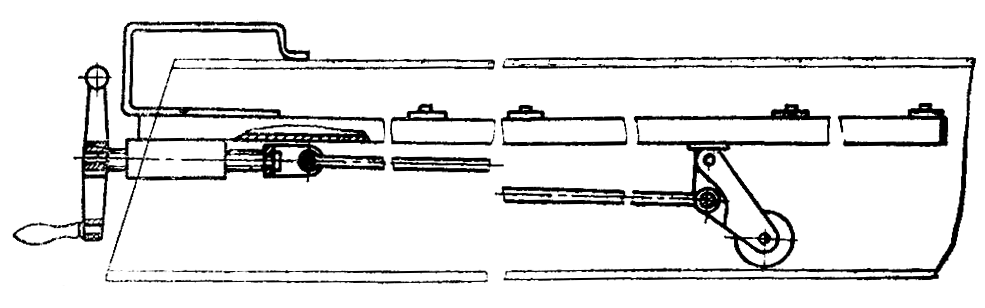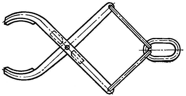 Заведите в прямоугольные трубы рамы тележки по две планки в каждую трубу с помощью приспособления ( рис. 304 ). Совместите металлическим стержнем диаметром 10 мм с заостренным концом отверстия рамы тележки, крышек катков и планок. Закрепите катки болтами 9 ( см. рис. 301 ) с пружинными шайбами. Установите поддерживающие катки, закрепите их кронштейны болтами 4 с пружинными шайбами. Момент затяжки болтов 9 и 4 220...280 Н-м (22...28 кгс-м). Установите защитные щитки и заверните болты с пружинными шайбами, не затягивая. Вставьте между щитками распорки и наверните на них гайки с пружинными шайбами. Затяните болты и гайки. Снимите тележку с подставки и установите ее катками вниз. Установите механизмы сдавания 6 и натяжения 2, натяжное колесо. Закрепите щиток 5 тележки четырьмя болтами с пружинными шайбами.