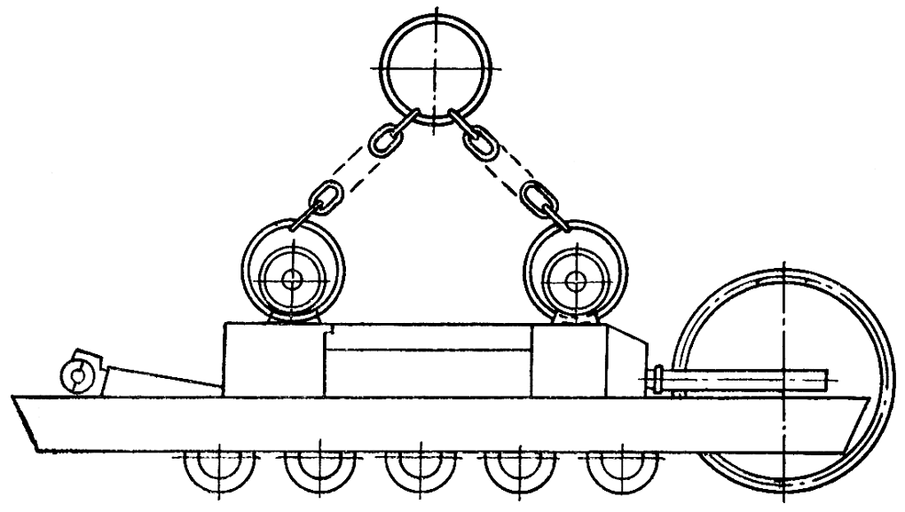 Рис. 303. Приспособление для подъема опорного катка